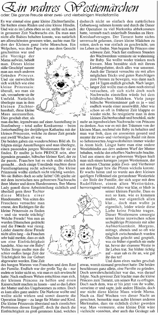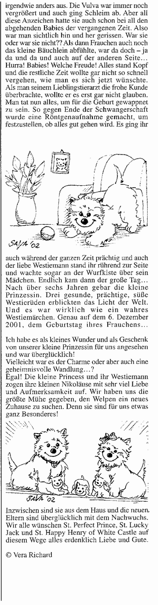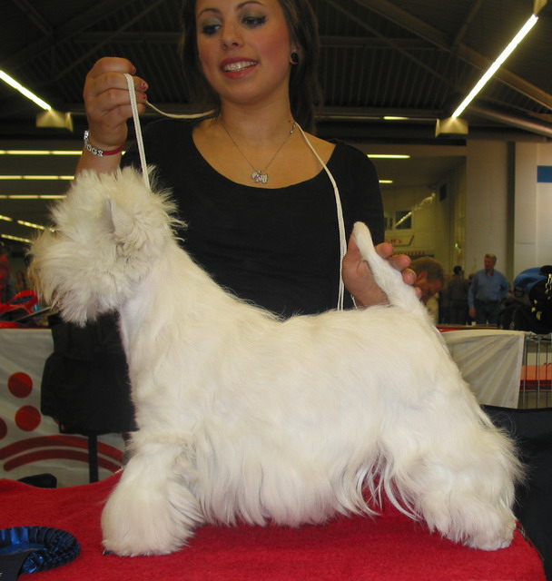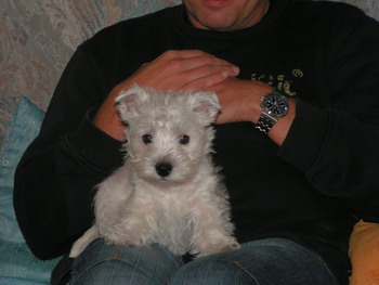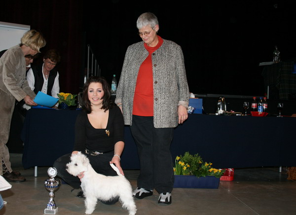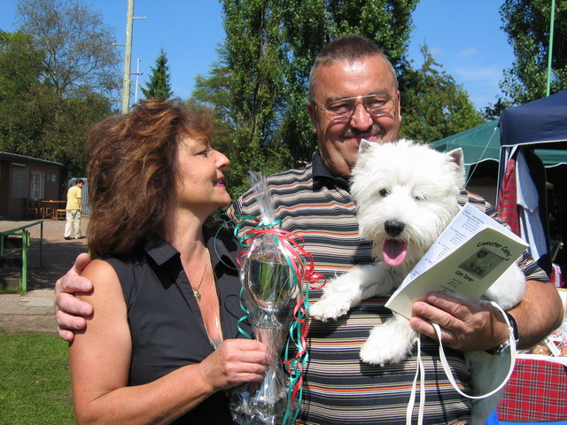 Erhard Forever Of White Castle (*15.01.2007) Aus dem letzten Wurf unserer "Lucy" (Lady Glory Knight Of White Castle mit Ch. Rüden Hopeful F'Sunshine of White Castle) Mit der Namensgebung möchten wir unseren Lieblingstierarzt Erhard Schulze für seine stets liebe Hilfe und Unterstützung danken. Der Rüde befindet sich nun im Besitz von Doris und Werner Stawinski, Bottrop und sie sind mächtig Stolz auf ihren Zwerg. Erhard, der nun Danny heißt, wurde an jenem Tag Best Westie Puppy als jüngster Teilnehmer.