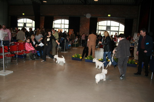 Und dann wurde ich erstmal ,von jedem der mir über den Weg lief, geknubbelt. Alle freuten sich riesig und ich war ganz stolz! So, wenn ihr jetzt denkt das hätte mir schon gereicht, dann hab ihr euch aber getäuscht, denn es ging ja noch um den Titel. Best Puppy in Show Na und wer den bekam brauch ich euch ja nich zu erzählen, ja ICH die Zuckersüße kleine LILLY! Da hatten die anderen Jüngstenhunde garkeine Chance, und was ich besonders toll fand, dass diesmal Frau Freerksen sich für mich entschied...also fanden mich zwei Richter super, hihi, toll oder?